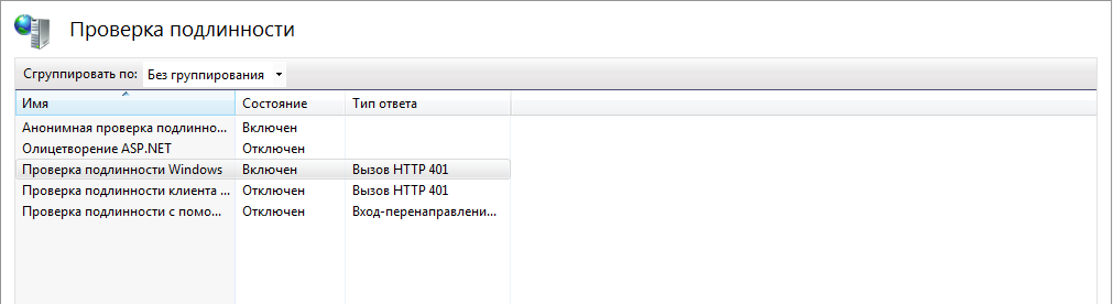 - Службы Интернета -> Безопасность->(Проверка подлинности Windows, Проверка подлинности с сопоставлением сертификата клиента, Проверка подлинности с сопоставлением сертификата клиента IIS)