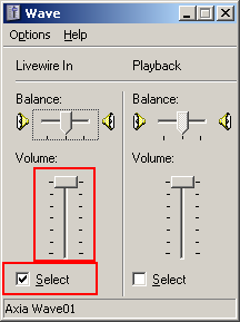 Таким образом, мы указали программе, что для регулировки уровня транзитного проникания сигнала с аудиоустройства Axia Wave01 необходимо использовать регулятор Line Volume на линейке Volume control: Livewire In аудиомикшера Axia Wave01.