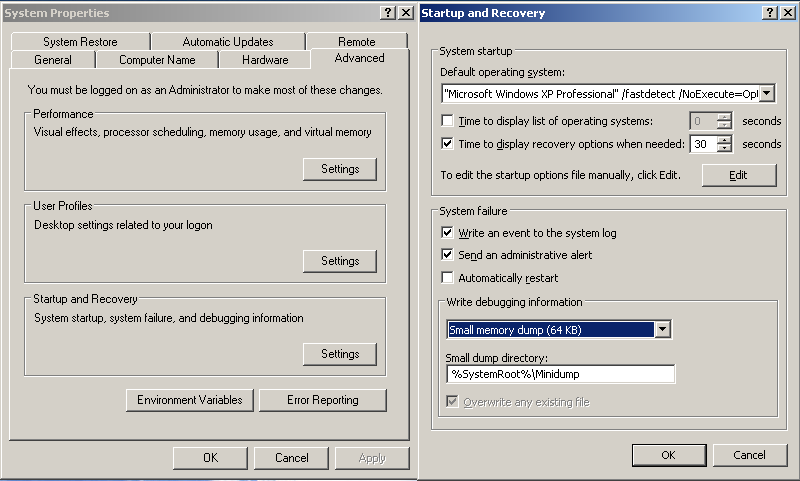 Если информации для установления причины недостаточно, (или дамп вообще не записывается ), то можно попробовать увеличить кол-во информации, сохраняемое в дампе.