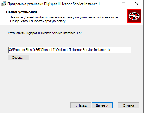 Далее необходимо выбрать путь, куда будет установлена программа. При установке второй копии сервиса, его название и путь установки по умолчанию сменятся на Digispot II Licence Service Instance 2