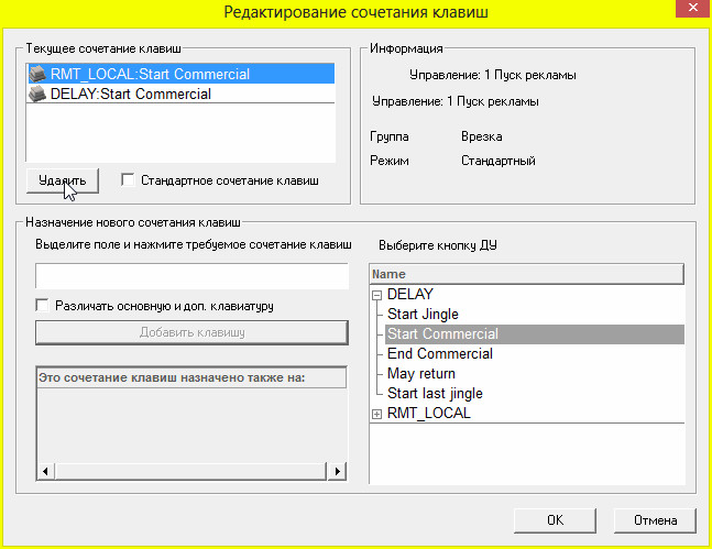 Для этого откройте окно редактирования сочетаний, найдите нужную команду устройства DELAY и добавьте ее.