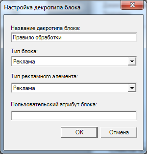 - тип рекламного элемента, который будет обрабатывать данное правило;