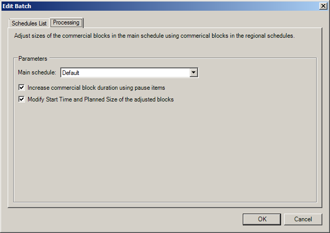 Выберите пункт главного меню: Компоненты\Adjust schedule block sizes. Откроется окно Batch Schedule Processing.
