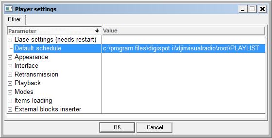 - Имя расписания: имя (не путь хранения) расписания, в котором будет осуществляться поиск элементов для получения дополнительной информации о проигрываемом в плеере элементе