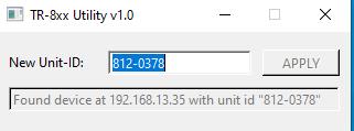 Введите в поле New Unit-ID необходимое значение и нажмите APPLY.