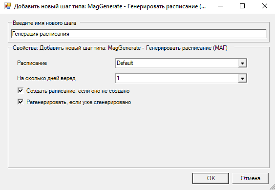 Регенерировать, если уже сгенерировано — флажок устанавливается, если требуется перегенерировать уже существующее расписание.