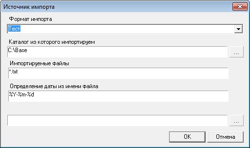 Формат импорта — в раскрывающемся списке выберите нужный формат импорта. Если список пуст, то форматы импорта надо создать в окне Настройки импорта.