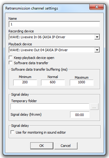 Signal delay is necessary in cases where the retransmission needs to be carried out with a time delay (for example, if there is a difference in time zones). In this case, the retransmission data will first be temporarily stored on the computer, and then played back after a specified time.